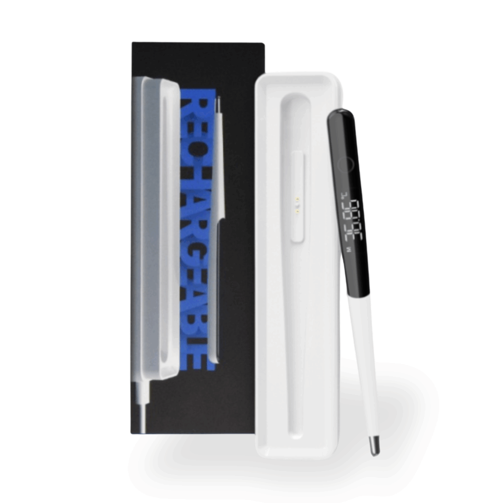 Utviklet som et moderne og mer eksklusivt alternativ til vanlige termometre, kommer det med et oppladbart litiumbatteri, praktisk USB-C-lading og IP54-vannbestandighet for enkel rengjøring. Med både °C og °F, automatisk avstenging og lavbatterivarsel er dette termometeret laget for langvarig og daglig bruk for hele familien.